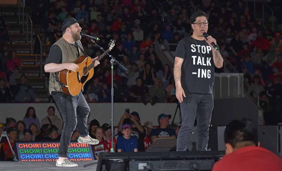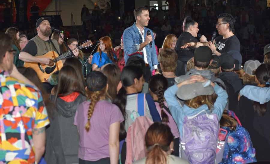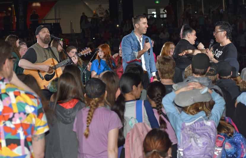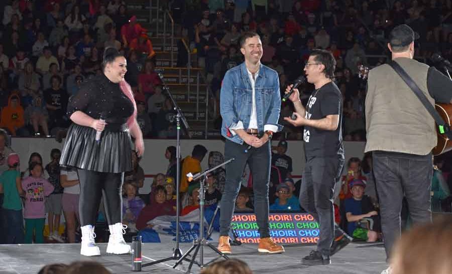 Teacher and organizer Andy Speers hinted ahead of time that there would be at least one returning guest for the anniversary event and students were treated to four returning entertainers – dancer Luca Patuelli, singer Stacey Kay, singer-songwriter Peter Katz, and Choir! Choir! Choir!, a group that turns the audience into a choir.