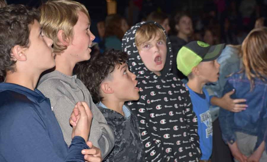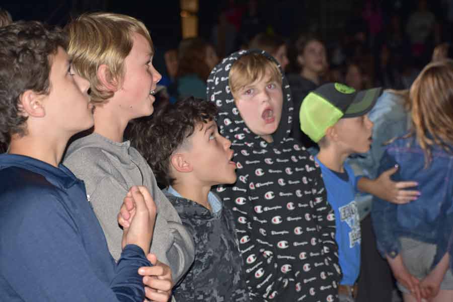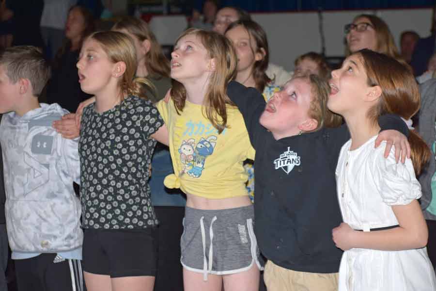 The group famously gets the audience singing and students belted out their parts with enthusiasm.