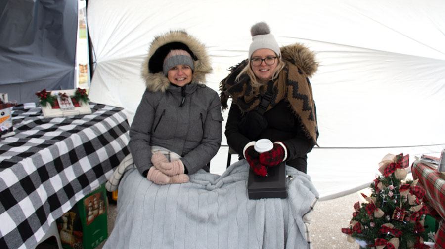 Janette and Kierstin MacMillan, a mother-daughter team, huddled under blankets to keep warm. But sales were brisk for their business, Bella Floral and Chalk Design.