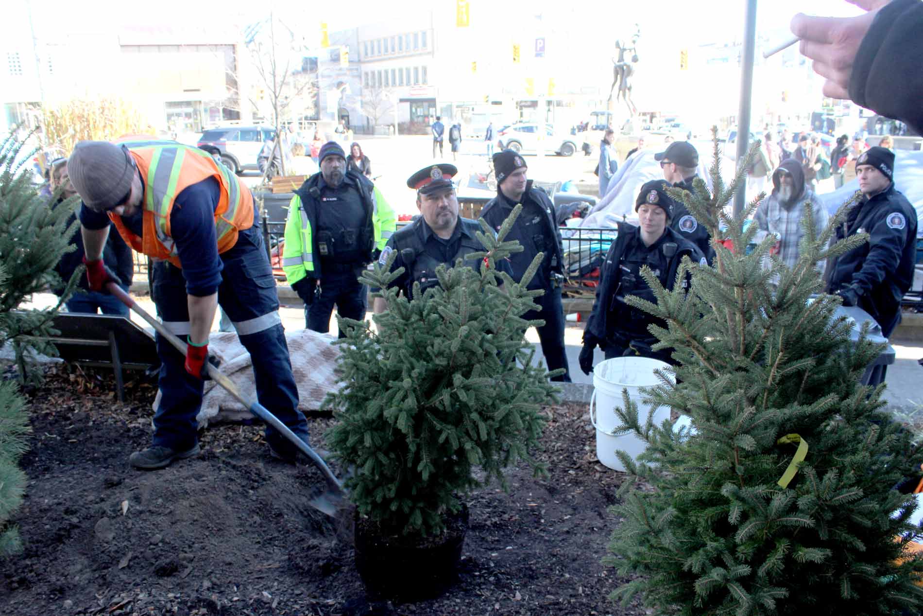By 5pm, about 50 people were standing in the square, including homeless people, social workers, police, bylaw officers, City of Guelph staff and community members.