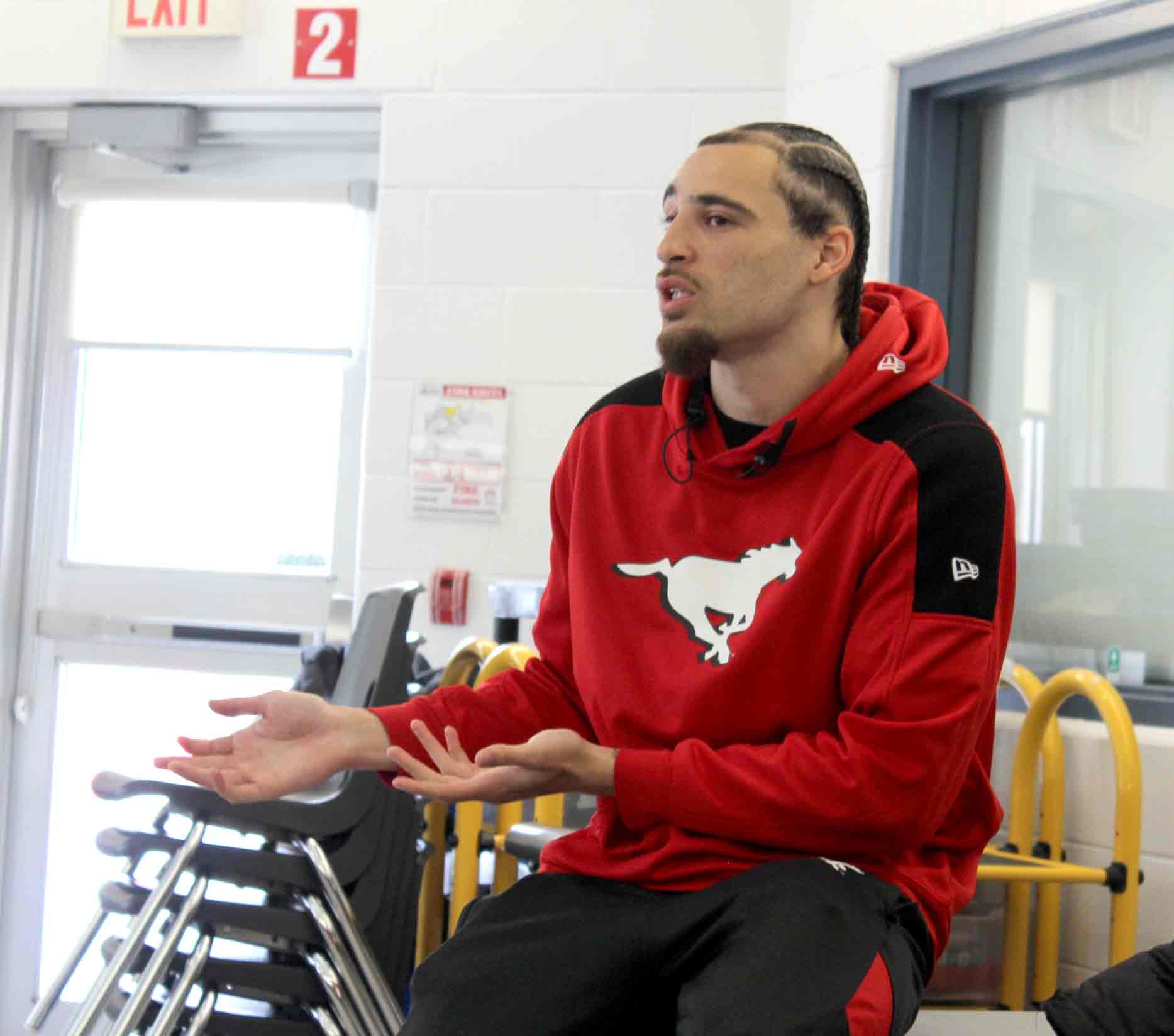 GUELPH – Calgary Stampeders wide receiver Clark Barnes visited St. Joseph Catholic Elementary School in Fergus and taught Grade 6, 7 and 8 students about the importance of finding purpose.