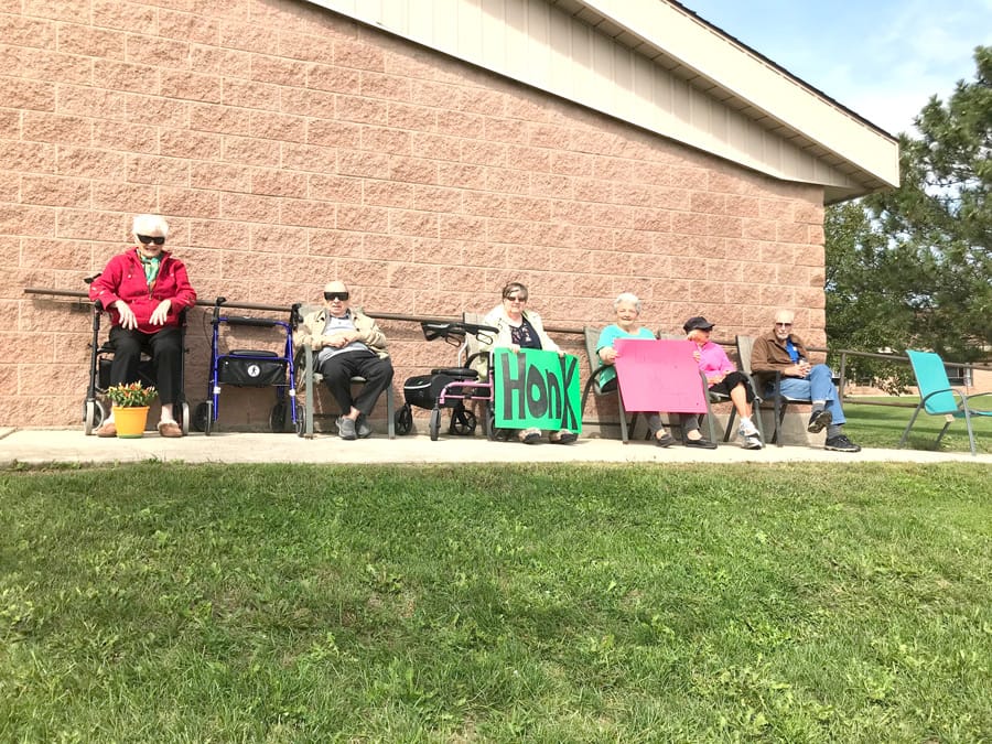 “This year had to be different so we got in contact with our local ‘car guys’ Jim Walton and George Termain and planned for a drive-by socially distanced event,” said Jennifer VanBeek, an activity aid at the retirement home.
