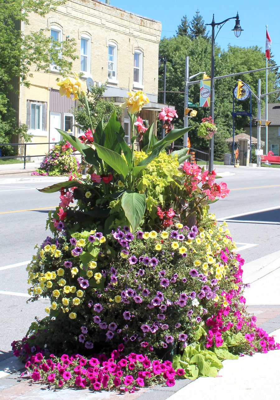 Town of Minto landscape manager Paul Judge and his crew have kept the hanging baskets and flower boxes thriving. The plants and flowers did take a beating in the recent storm that brought terrific winds, rain, and hail, but they survived and are still attracting compliments. Plantings are maintained at the post office, arena, community hall, fire hall, Rotary parks, cemeteries in Clifford and Lakelet, the Cenotaph park, and at the intersection at Kettles Restaurant as well as the flower boxes at the arena and the smaller flower boxes along Elora Street.