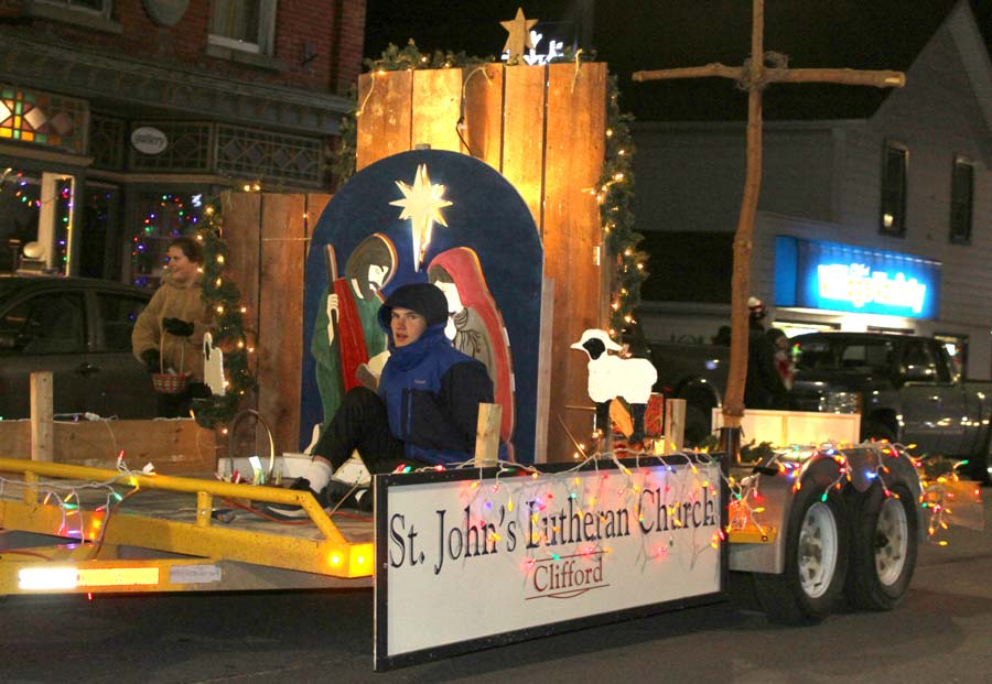 Christmas parade - Forty entries, including fire trucks, decorated vehicles, festive floats, singers, twirlers, drummers and Clifford the Big Red Dog all combined to create a festive atmosphere for the Santa Claus Parade in Clifford on Nov. 30.