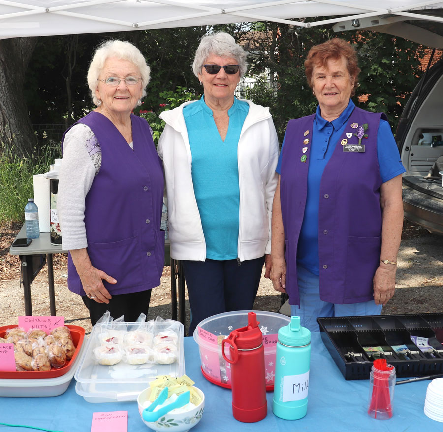 WELLINGTON NORTH– Louise Marshall Hospital Auxiliary members Gail Jefferson, Marion Officer and Penny Renken helped to serve hot beverages and sweet treats to shoppers at the North Wellington Farmer’s Market on June 17. The funds raised from selling coffee, tea and baked goods go towards the purchase of medical equipment for the local hospital.