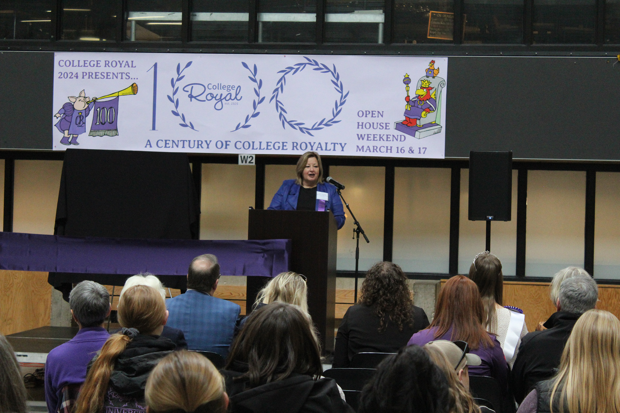 GUELPH – Ontario agriculture minister Lisa Thompson spoke at the opening ceremony of the 100th anniversary of the College Royal at the University of Guelph on March 16. Thompson shared stories of her time at the local institution and her experience with entering her rescue cat into a cat show while a student. University president and vice-chancellor Charlotte Yates as well as Guelph Mayor Cam Guthrie also addressed the crowd.