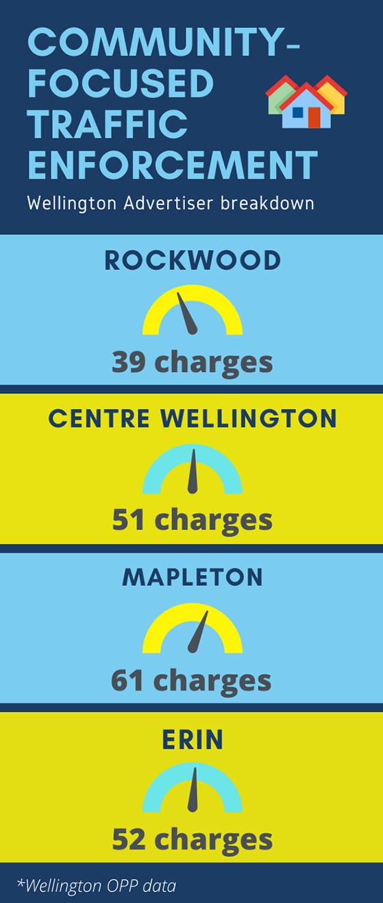 Starting in March, the unit has run community enforcement blitzes in Rockwood, Centre Wellington, Mapleton and Erin, resulting in 203 charges ranging from speeding to insecure loads.