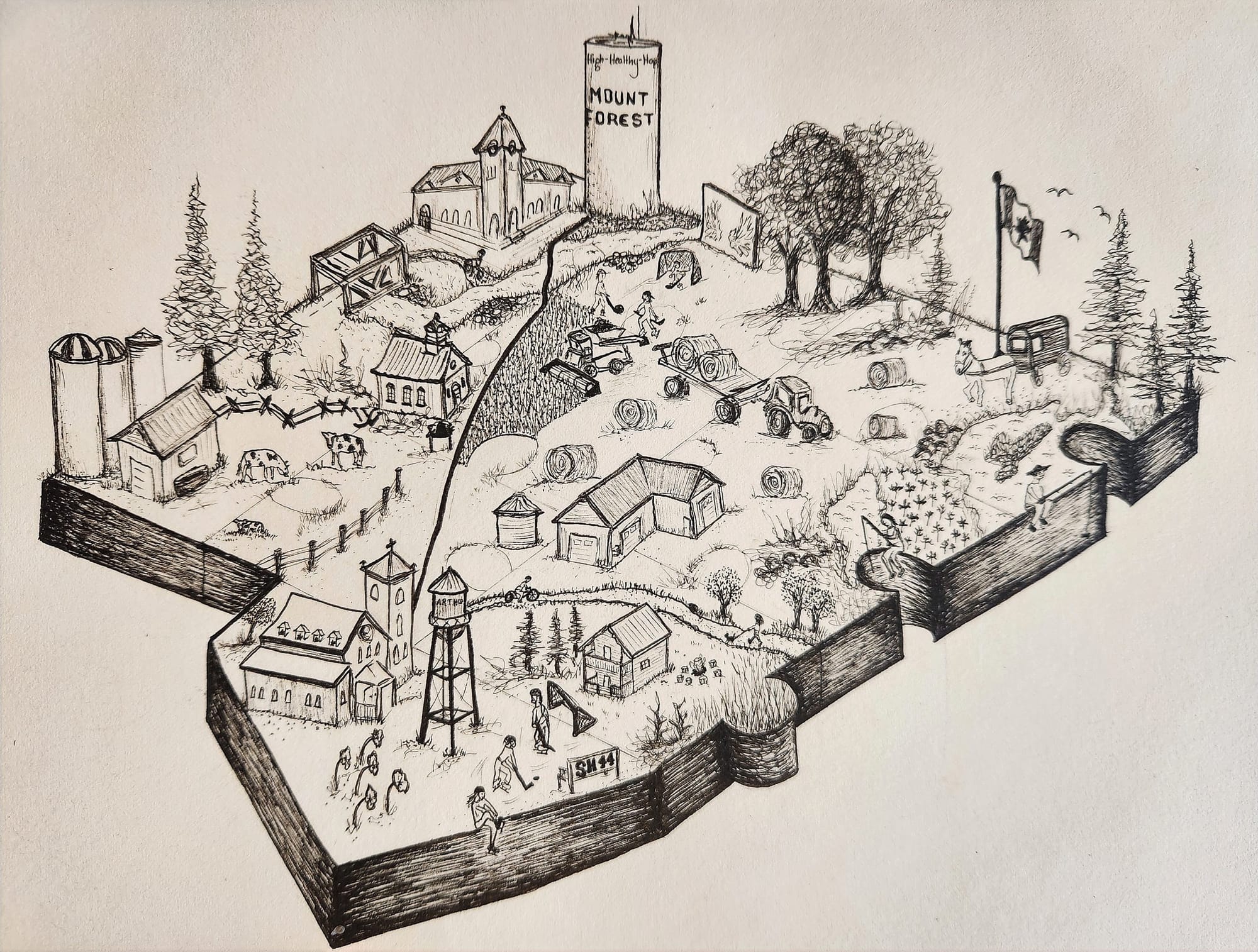 The sepia-toned piece, inspired by a 1913 postcard, depicts Murphy’s Mill and the old iron bridge at the south end of Mount Forest, “capturing the area’s historic charm,” the release said.