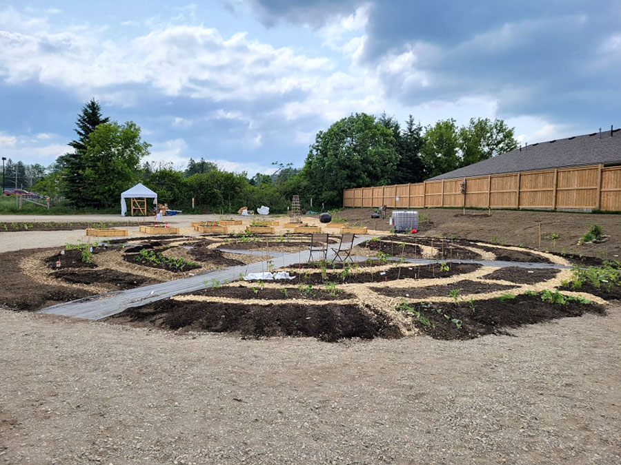 Rather than square or rectangular garden plots, organizers in Mount Forest have made a circular bed that looks like a labyrinth.