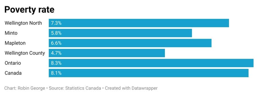 This compares with a 4.7% average poverty rate in Wellington County, 8.3% province-wide, and 8.1% in Canada.