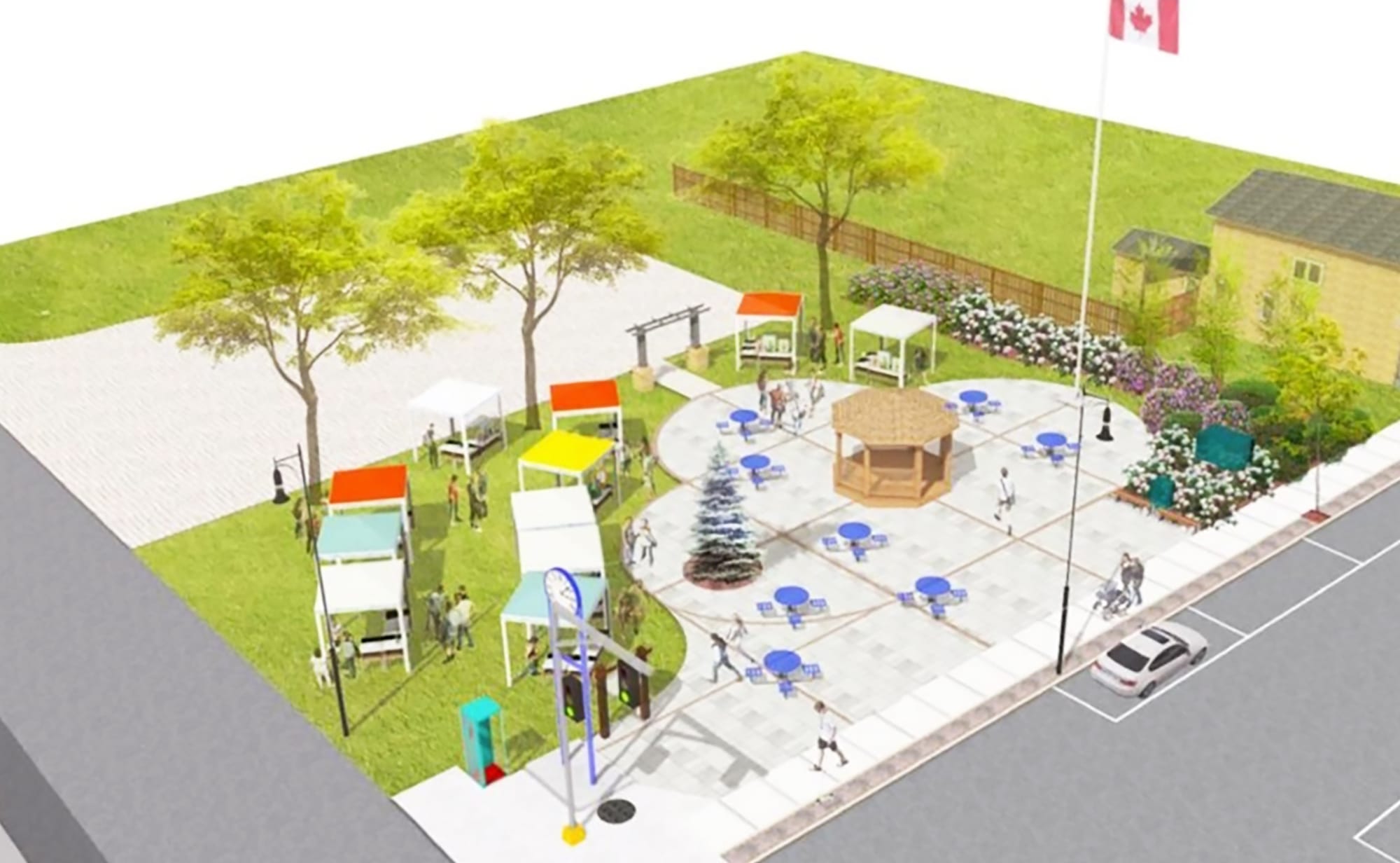 The project will see the grassed area of the park, which currently includes a gazebo, enhanced with decorative trees, brick and stone walkways and patio sections, benches and other seasonal seating options.