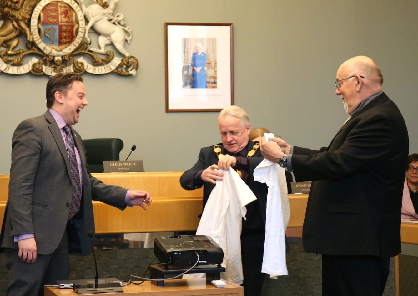 Once council approved the budget with no additional changes, White invited Campbell and treasurer Ken DeHart to the centre of the council chamber.