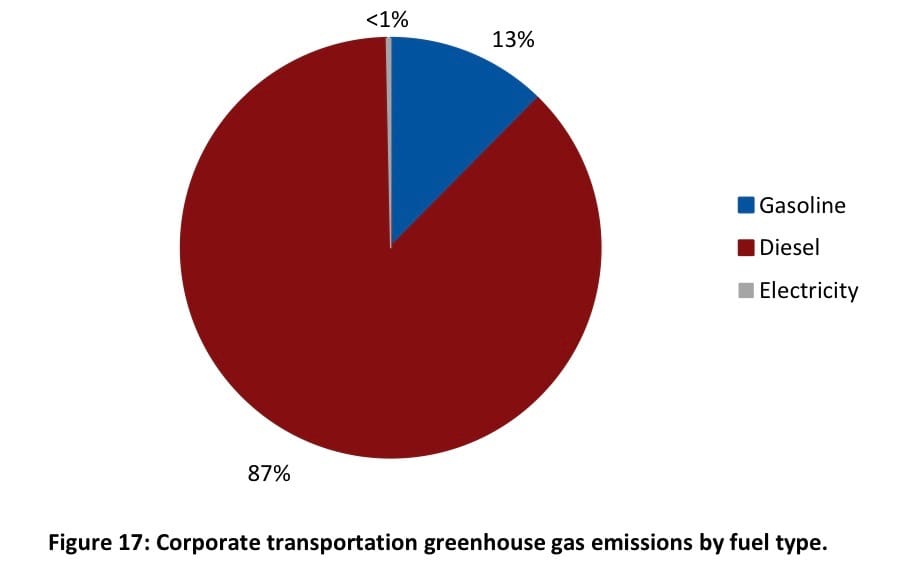 For the 2017 base year, the report estimates the county’s corporate greenhouse gas emissions at 8,300 tonnes of carbon dioxide equivalent (CO2e).