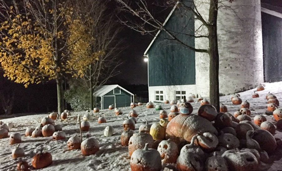 Pumpkins – The Wellington County Museum and Archives held its annual Pumpkin Walk on Nov. 1. Community members dropped off their pumpkin carvings and paintings throughout the day and then all were invited to walk amongst the pumpkins after 7pm. COVID-19 guidelines were not the only differences this year. Sunday evening saw snow blanket the region, including the pumpkins.