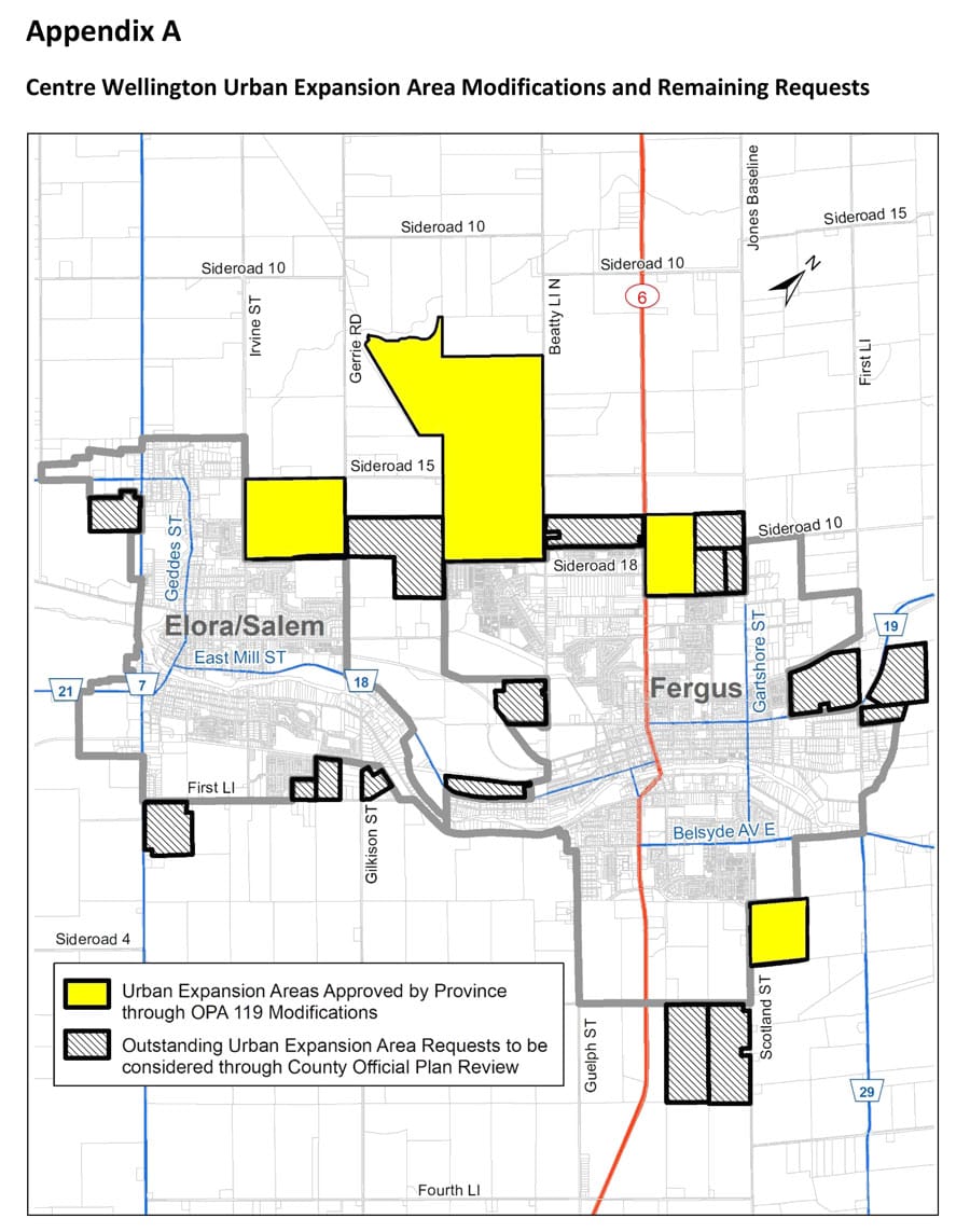 Through modifications to the county’s OPA 119, the province has already unilaterally expanded urban areas in Fergus, Elora/Salem, Rockwood and Clifford and supported conversion of employment area lands in Arthur and Elora.