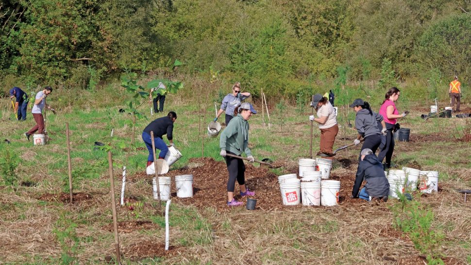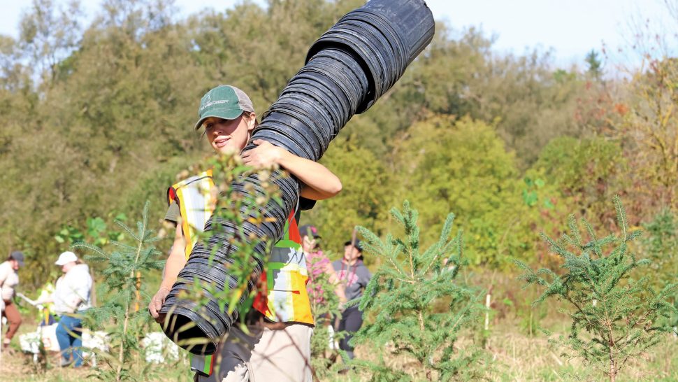 ARTHUR – In an open grassy area by the headwaters of the Conestogo River in Arthur, approximately 100 people took up shovels on Oct. 2 to transform the meadow into a forest.