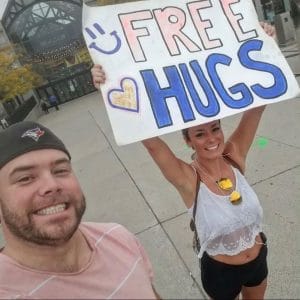 James Hishon and Melynnie Kalosza offering free hugs in downtown Guelph. Submitted photo