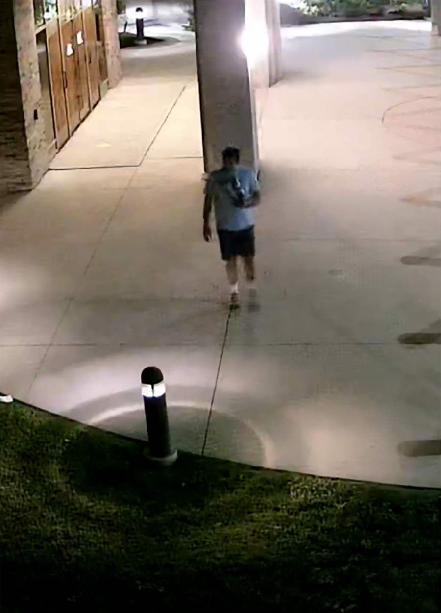 Three people were walking northbound on St. David Street, when one person left the group and walked across the church parking lot towards an exterior light fixture.