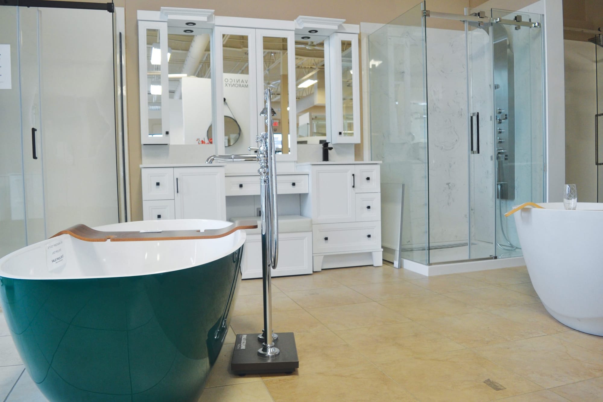 Come in and be inspired by their state-of-the-art showroom, designed to give you a hands-on experience - touch, twist and see the working models and cutting -edge designs. Run your fingertips across the surface of quartz countertops. Open the drawers of their bathroom vanities. See your reflection in their fabulous mirrors and explore the huge selection of faucets, sinks, tubs and shower heads.
