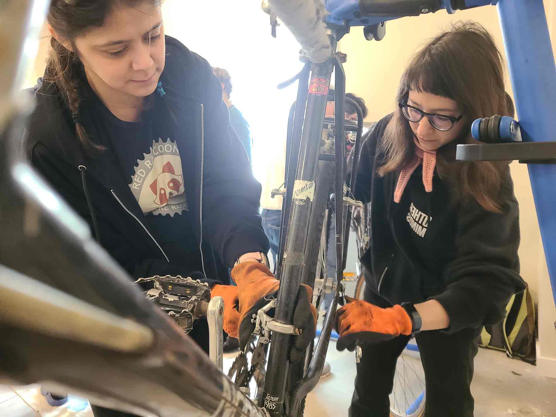 BBBSCW participants attended the Big Bike Fix as an opportunity for youth to learn bike-related skills, including changing a tire.