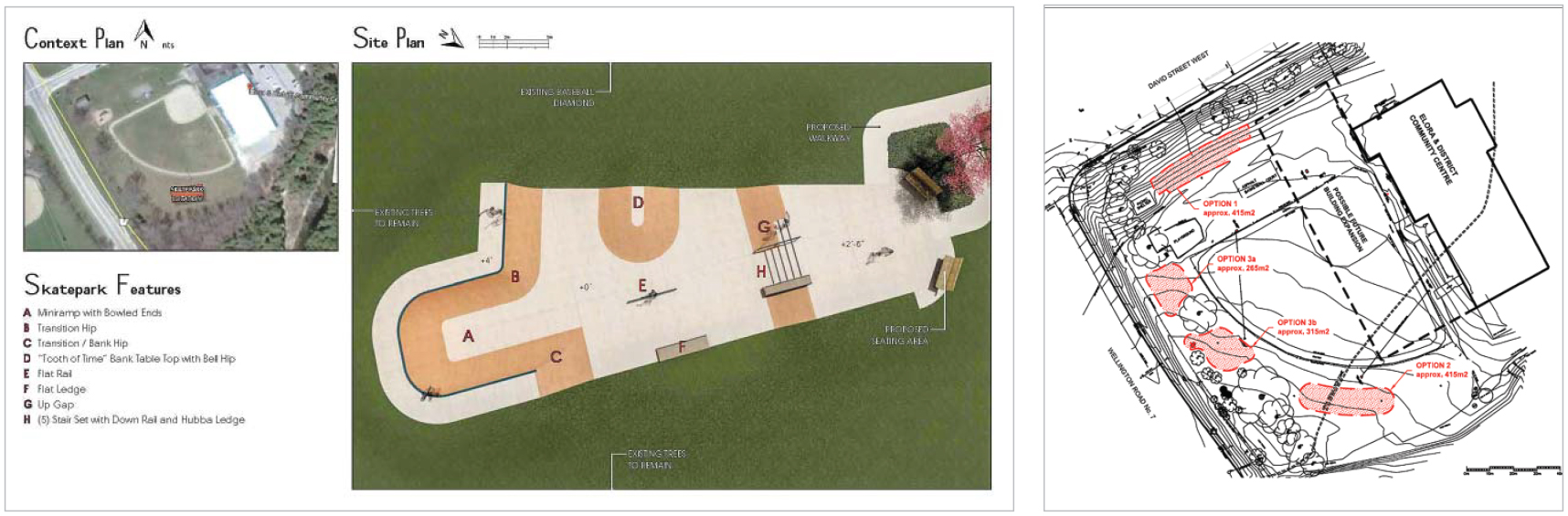 However, the Centre Wellington Skatepark Association, which raised $62,092 of the total $430,000 for the project, preferred a site located in the northeast quadrant of the community centre grounds, close to David Street and the picnic centre and playground.