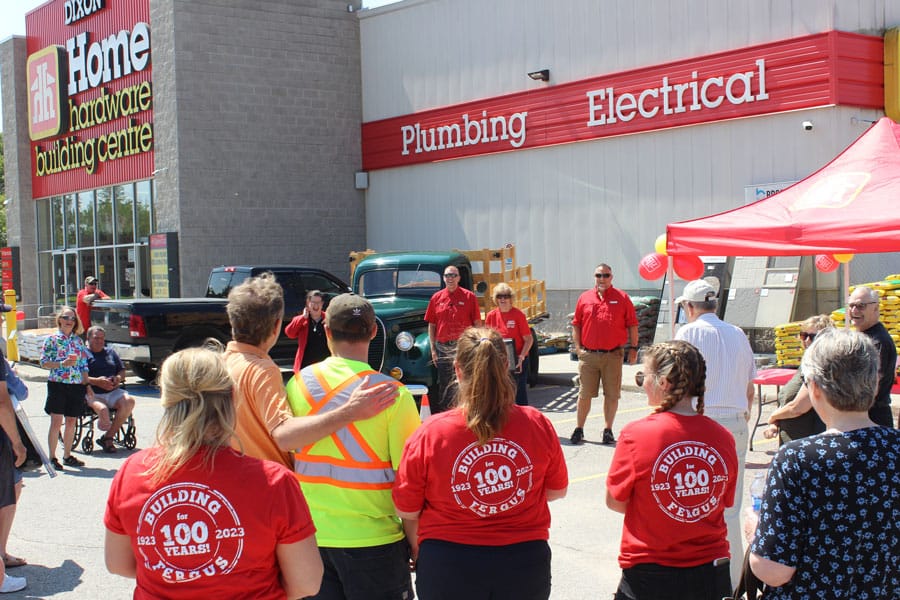 FERGUS – The Dixon family, local community members, and former employees came out to Dixon Home Hardware this weekend to celebrate 100 years in business with a barbecue, raffle and ceremony outside the store in Fergus.