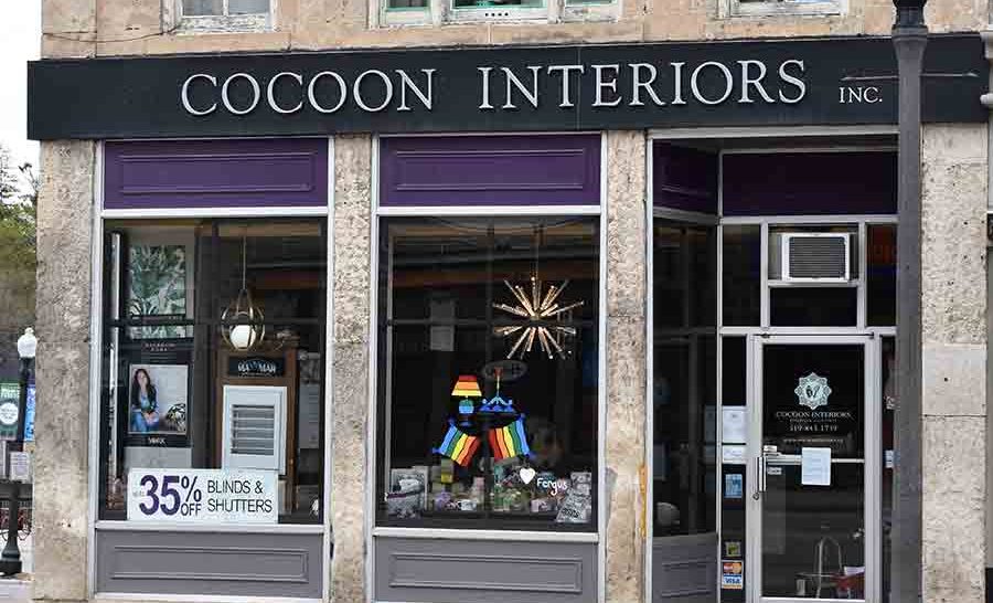 Rainbows in Fergus – Shops in downtown Fergus have been decorated with rainbows and colourful themes to draw the community together as retail shops begin to open once more.