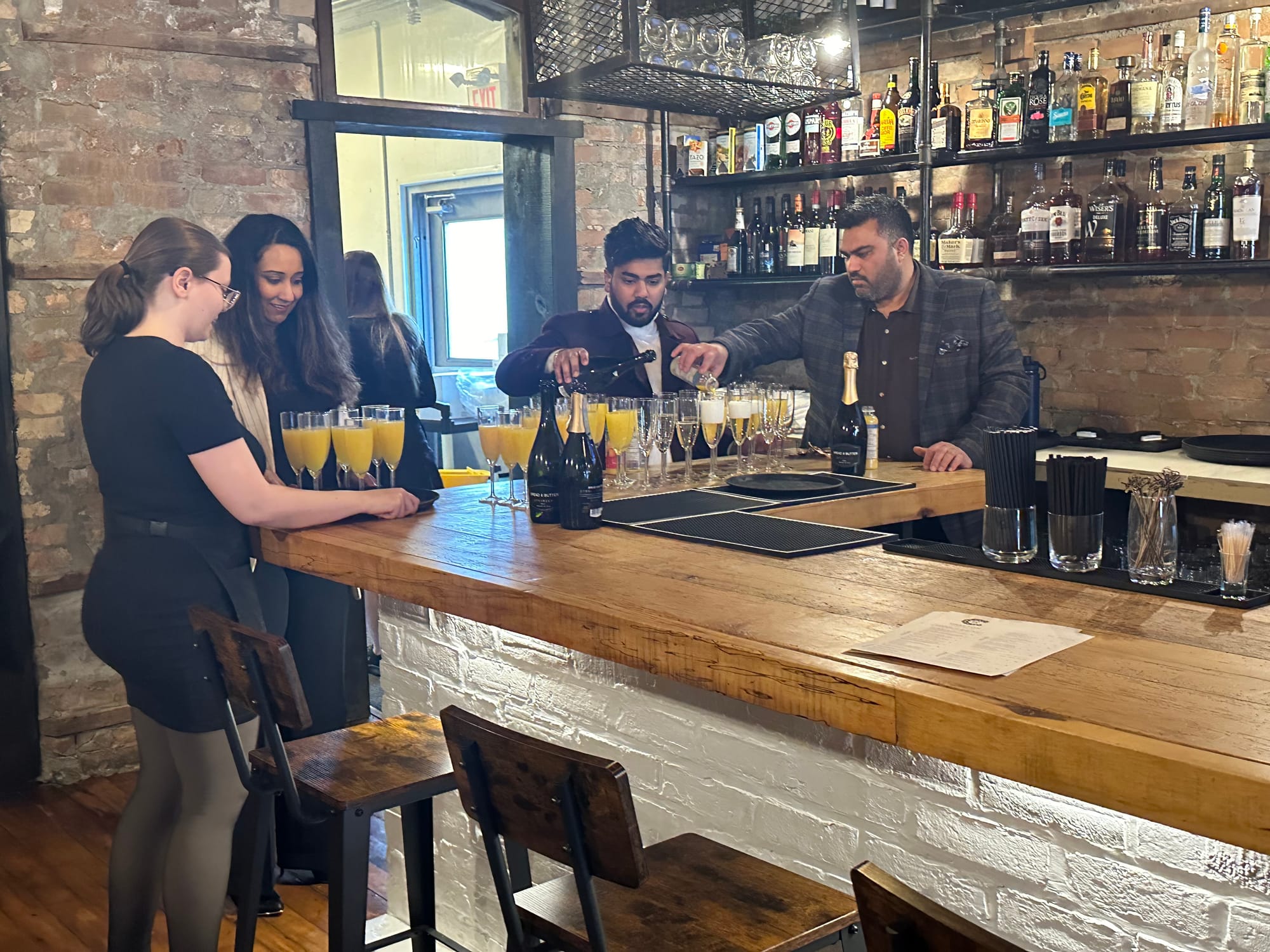 Drayton Chop House owner/operators Gaurav Parmer, left, and Vidit Gupta weild the sissors to cut the ribbon at the official opening of the restaurant on Feb. 1. Perth-Wellington MPP Matthew Rae, left, and Mapleton Mayor Gregg Davidson, second from left, were among the local officials, family members and well-wishers on hand for the opening. The popular downtown eatery, which closed over 18 months ago, was recently re-opened under the new management. Photos by Patrick RaftisGupta and Parmer help serve beverages to guests at the event.
