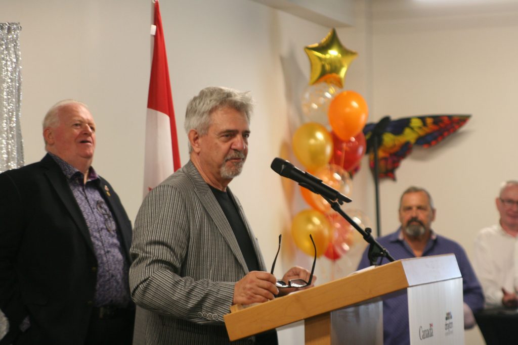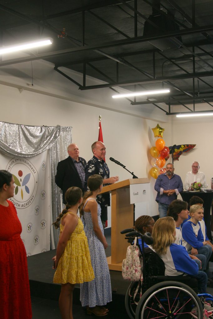 News conference — After the tours, a news conference took place on the second level of the Youth Academy building, where Drayton Entertainment CEO Alex Mustakas announced the federal investment into the academy.