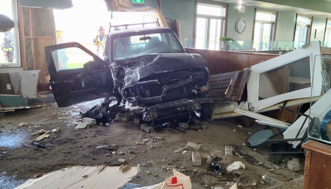 "Initial reports indicated that a pickup truck had struck a restaurant and that the driver was trapped," Wellington County OPP officials stated in a press release.
