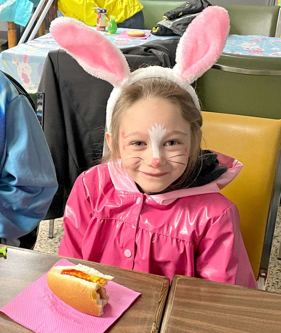 Melody Stocks enjoys a hot dog after getting her face painted.