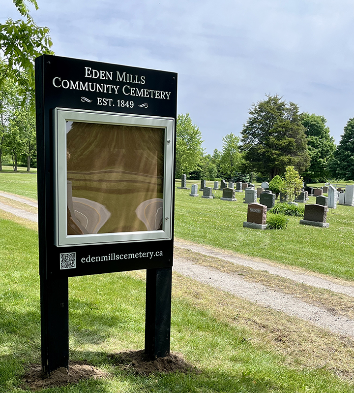 “Thanks to the generous donations from families and friends in our community and beyond, we were able to have signage created that doesn’t just say who we are – it’s also an information centre,” said Dr. Laura Brown, president of the Eden Mills Community Cemetery board of directors.
