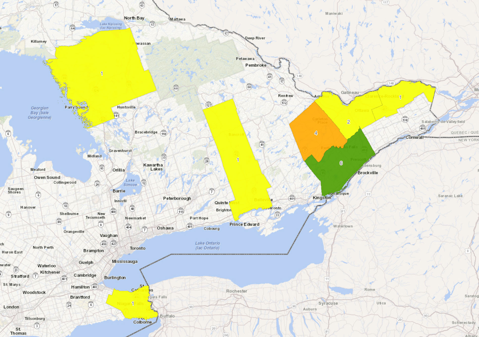 The other three cases were in Niagara, Hastings, and Parry Sound.