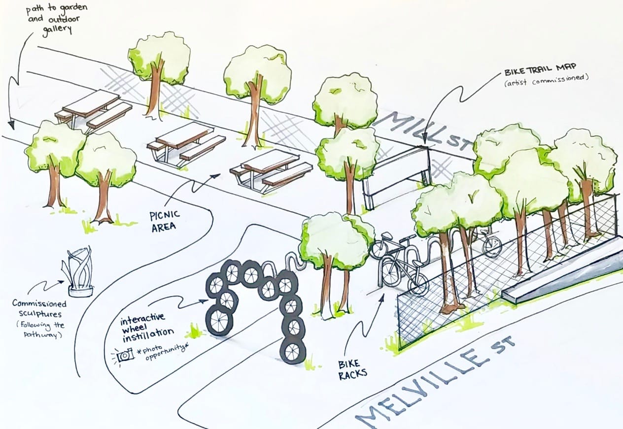 The outdoor space will include bike stands and picnic benches, encouraging people to consider the space for a break, and a biker's hub.