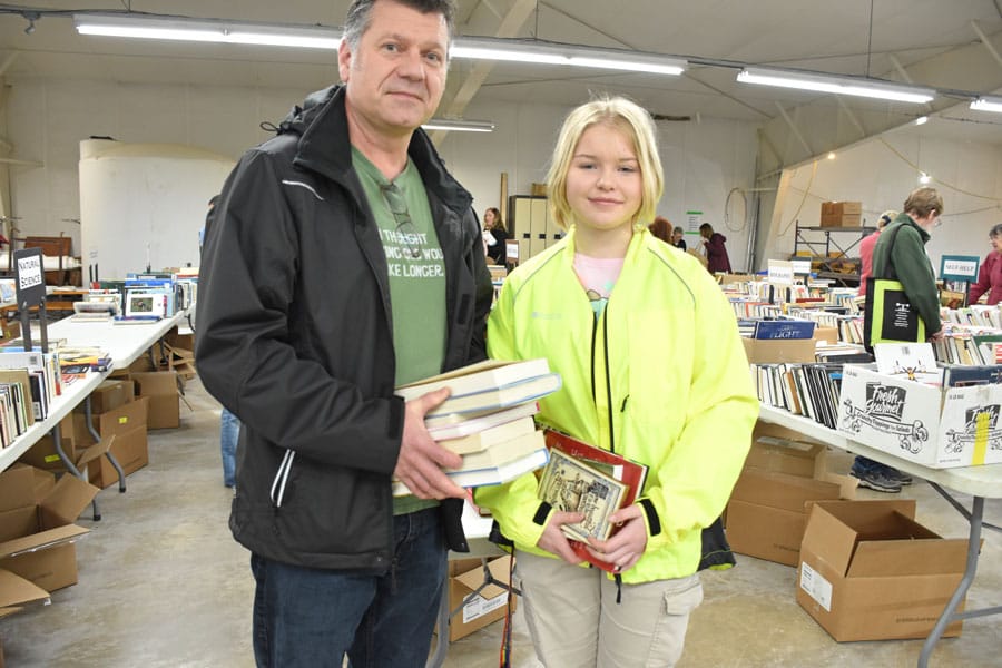 Book sale – The Elora Festival Book Sale was back with a vengeance this year, raising $64,000 for the Elora Festival. The sale ran over the weekend of May 5 to 7. Friday night was the busiest, organizers said, Saturday was pretty good, and Sunday was a little slower. This was the first time at the book sale for Kris and Gracie Elson, who were delighted with their finds. Photos by Joanne Shuttleworth