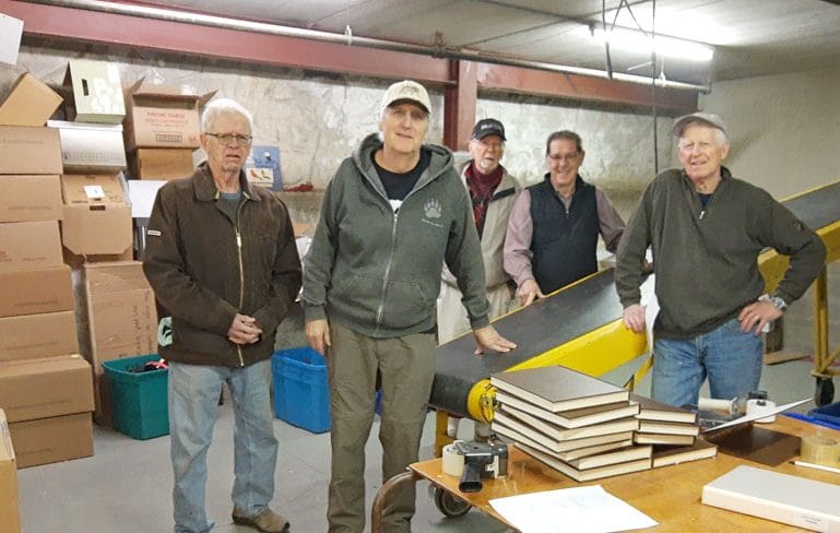 The volunteer team was busy the morning of Feb. 27 organizing books into categories, pulling out books in poor condition for recycling, and packaging them up for transport to the book sale in May.