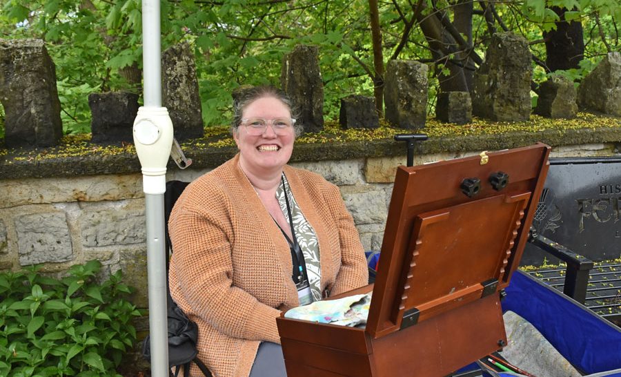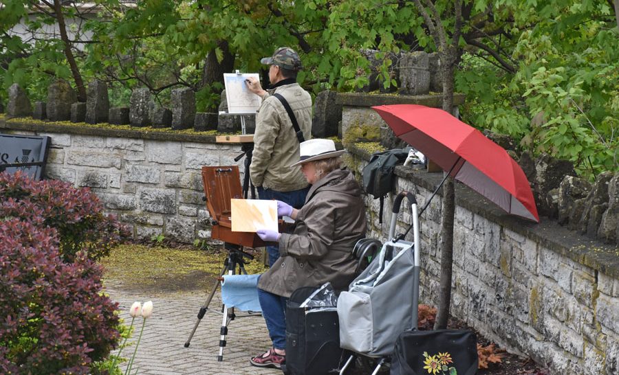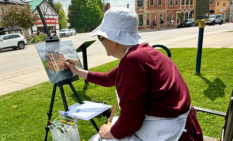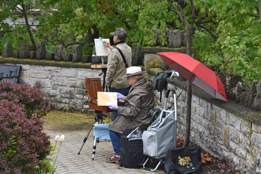 ELORA – The outdoor Elora Plein Air Festival, took place last week and on the weekend with the Quick Paint event happening May 17 in Fergus. About 75 artists from here and afar were given two hours to paint what they liked and then their work was judged by Elora artist Phil Irish for prizes and glory. Some of the pieces were also for sale. The event is popular with artists who like the challenge of completing work on a time limit. Spectators also enjoyed seeing the artists at work.