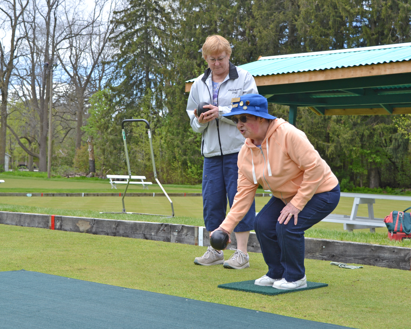 Mills had been suggesting to her neighbour Chris Kay that she try lawn bowling for years. Recently retired, Kay decided to come out last Friday afternoon.