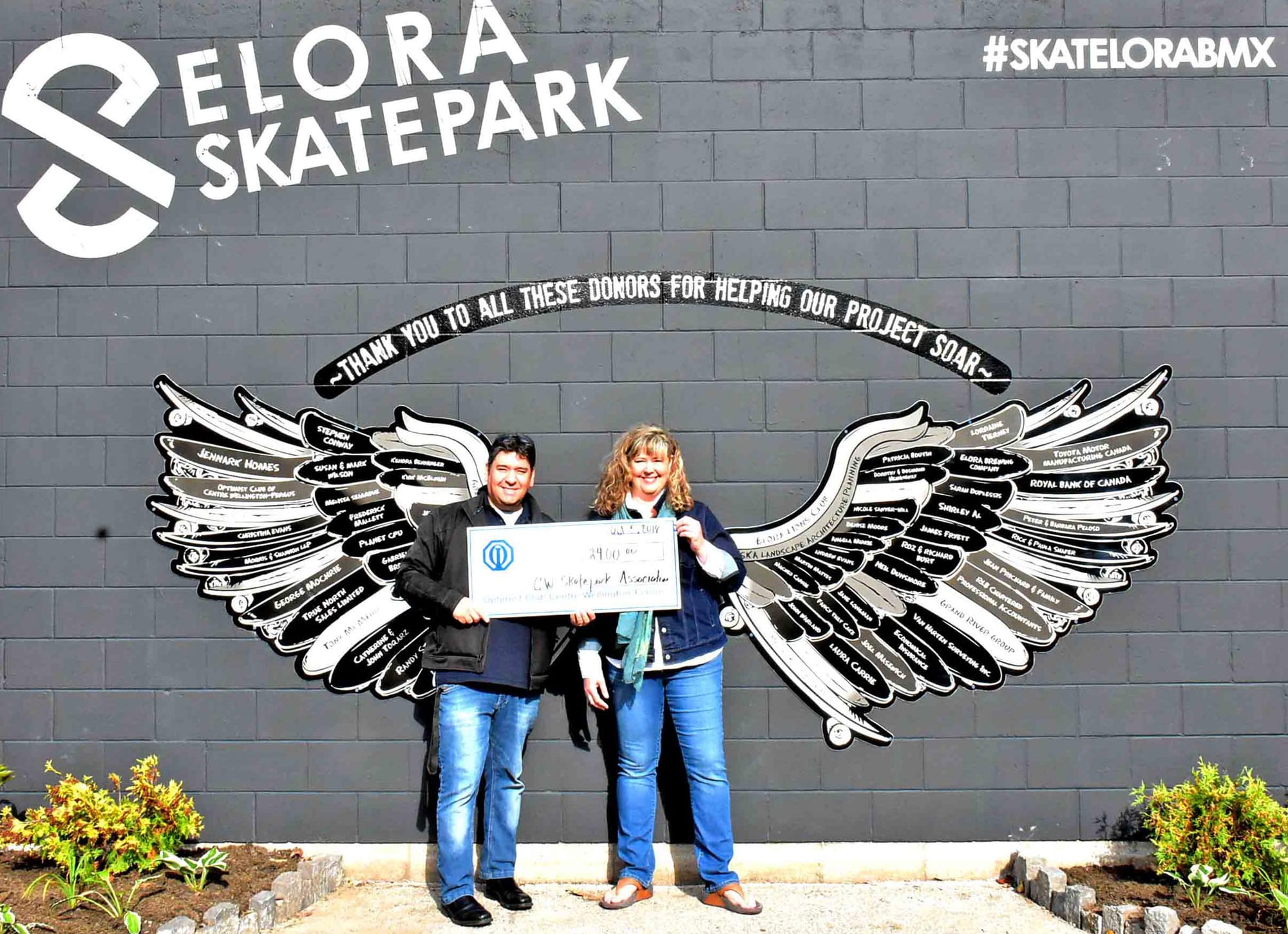 Another donation - Colin Barron of the Centre Wellington Optimists Club donated a further $2,400 toward the Elora Skatepark at the grand opening on Oct. 5. Accepting the cheque was Staci Barron, founder of the CW Skatepark Association.