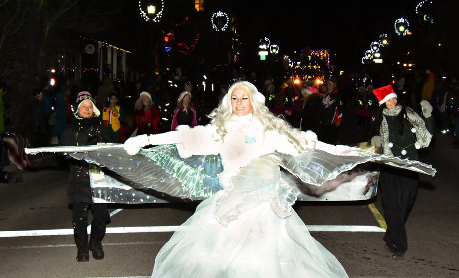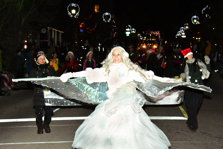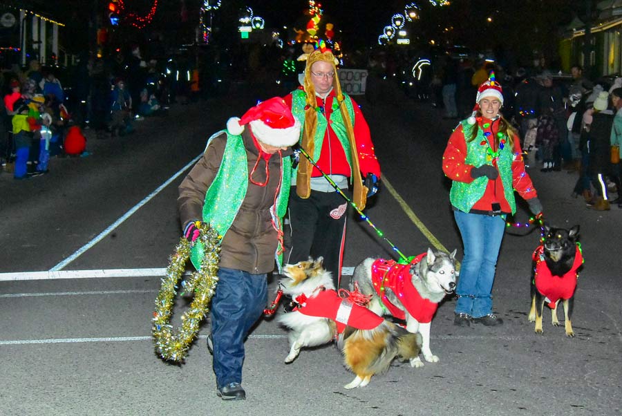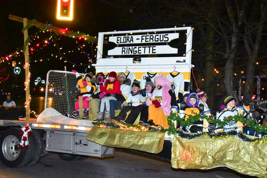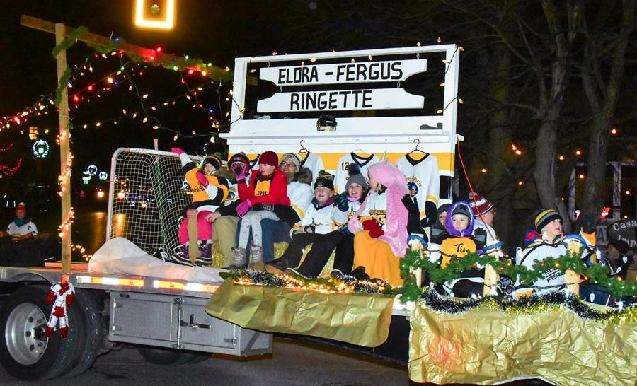Parade of lights – Santa Claus beat the ice and snow to make an evening appearance in Elora on Nov. 30. Community members dressed up along with their dogs and floats to participate in the annual Christmas tradition. The parade of lights wound through downtown Elora to culminate in a visit with Santa at the Elora Centre For the Arts.