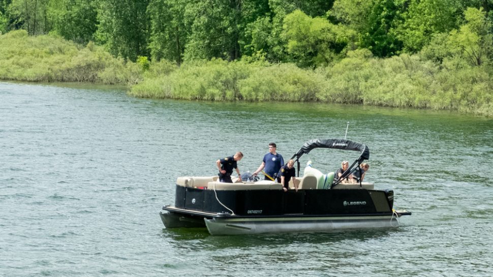 The Advertiser observed several boats belonging to fire services and the OPP searching the southeast edge of the lake sandwiched between the Conestogo Lake Conservation Area and cottages across the water, where the lake water empties at the Conestogo Dam.