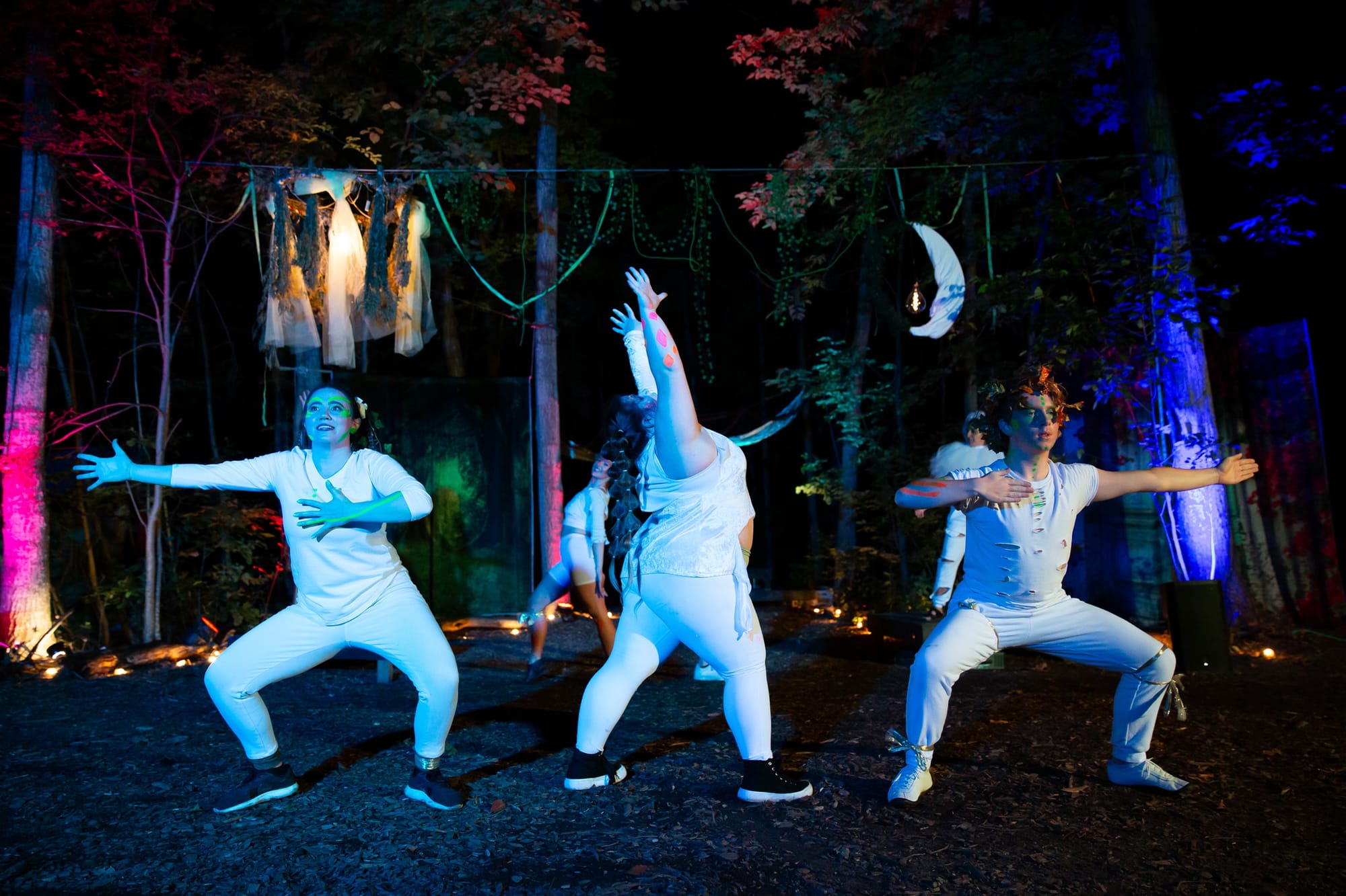In addition to these acts, the "Wizard of the Woods" Rob Power performed magic shows throughout the night and a secret passageway led attendants to a theatre production spearheaded by Norah Wardell of Dance and Heart dance company, in partnership with the Elora Community Theatre.