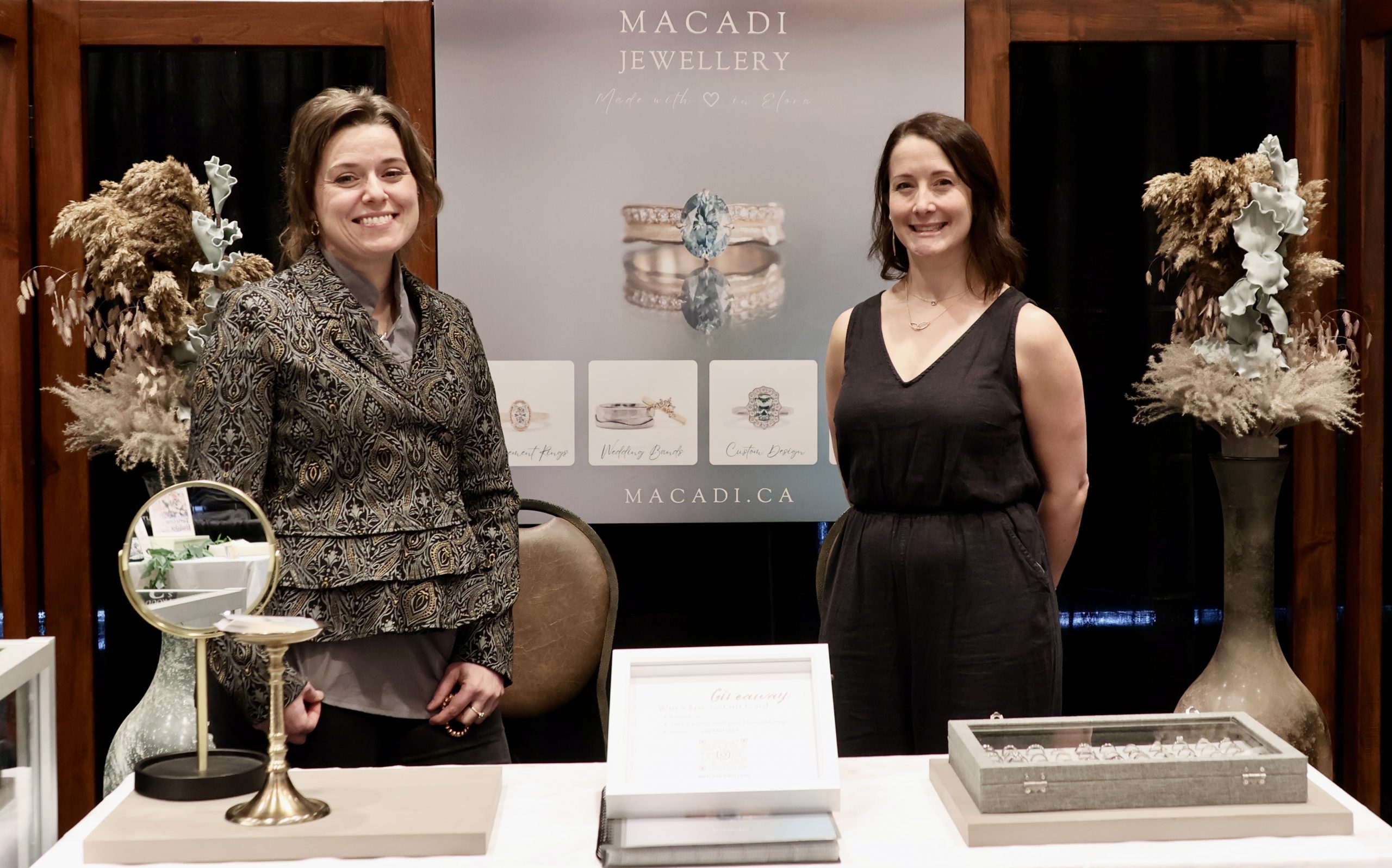 ELORA – Alaya Fuller, left, and Brittany Newman of The GrandWay Events Centre welcomed visitors to the Wedding Experience wedding show, on March 3. There were dozens of booths promoting everything from dresses to photographers, venues, caterers, jewelry, DJs, flowers, transportation… you name it, they were there for the first wedding show at the GrandWay.