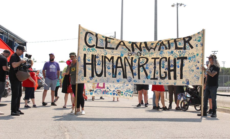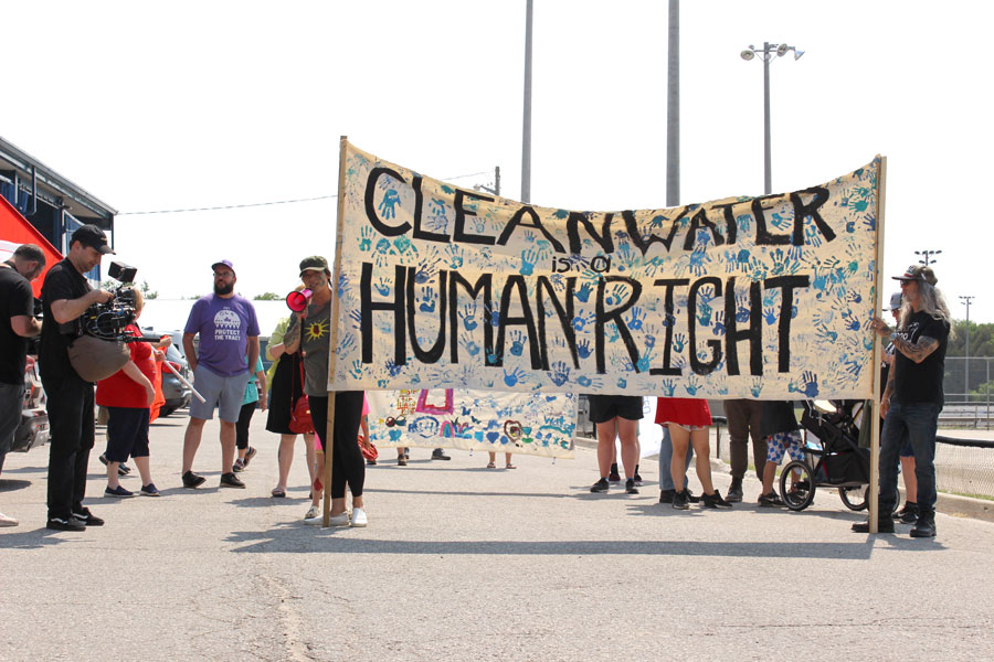 March – Following speeches, organizers and participants marched to Blue Triton to underscore their message: water is vital for life and should not be sold as a commodity.