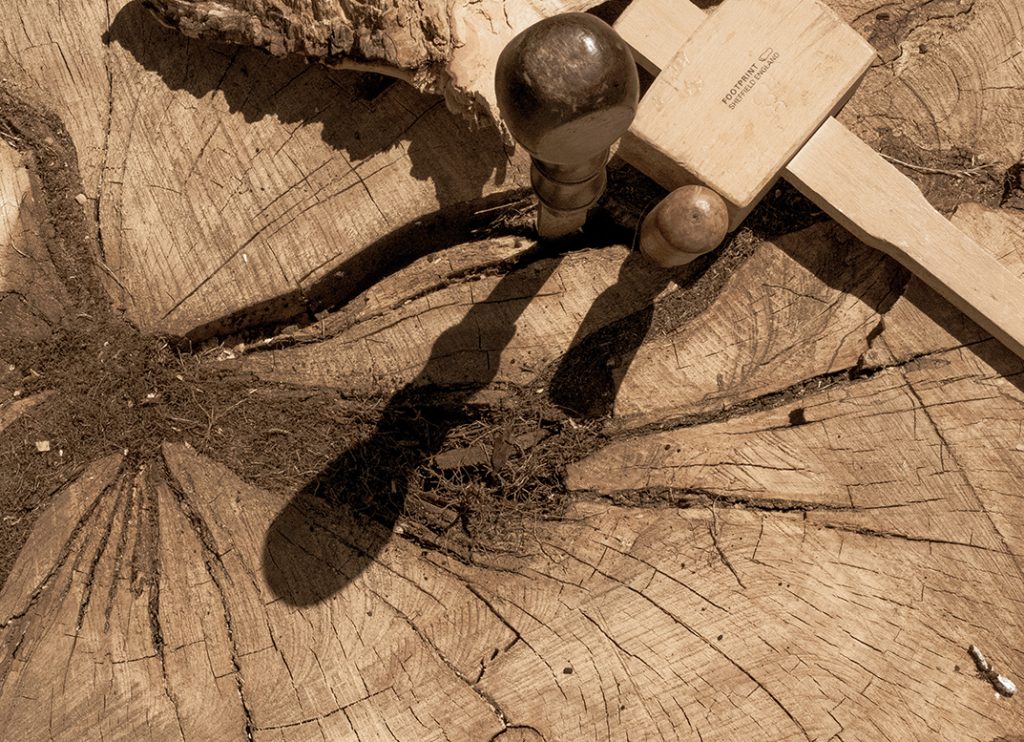 Tools of the trade photographed on the Hillsburgh tree stump. (Photo by Melissa Auchincloss)