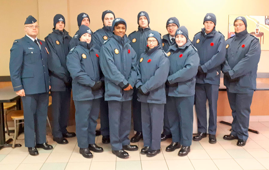 Warm thanks – The Erin cadets of 242 Ross Ferguson squadron, who stand vigil starting at 6am for the Remembrance Day service, extend their thanks for the owners of the nearby Coffee Time. For three years now the shop has opened early to give the cadets a warm shelter as they wait for their outdoor stints.