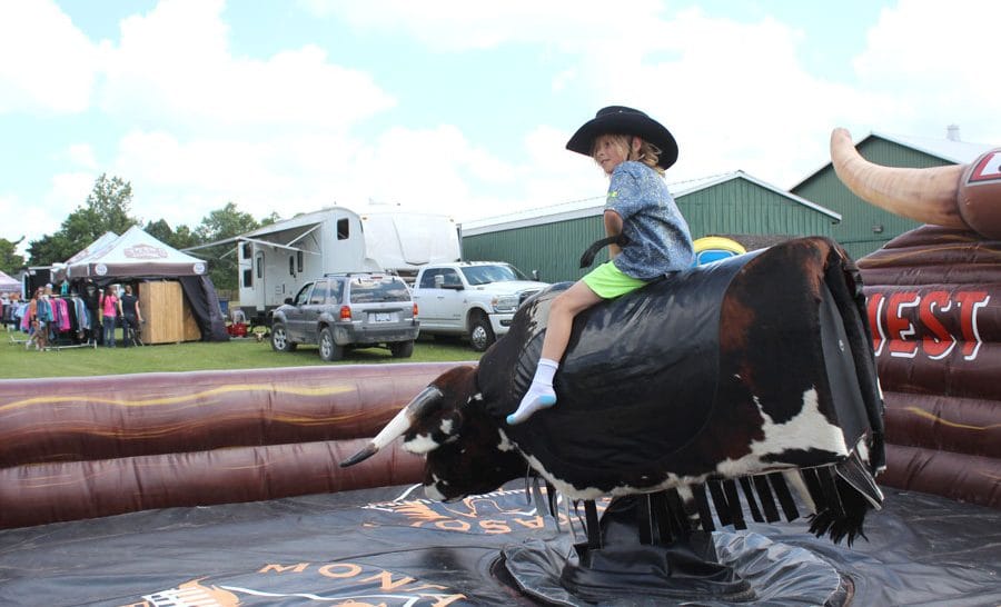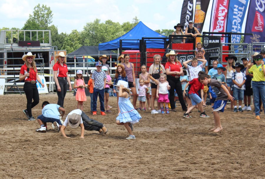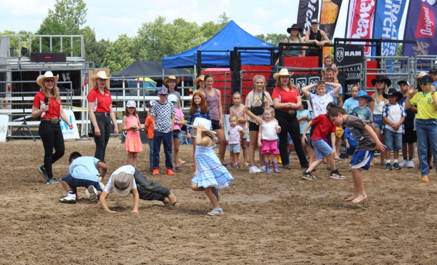 The Canadian Cowgirls welcomed children in to the arena for a range of  rodeo-themed activities, including barrel racing and bull riding, albeit without the horses or bulls. Kids gleefully laughed while pretending to ride invisible bulls, throwing themselves into the sand with fervour.
