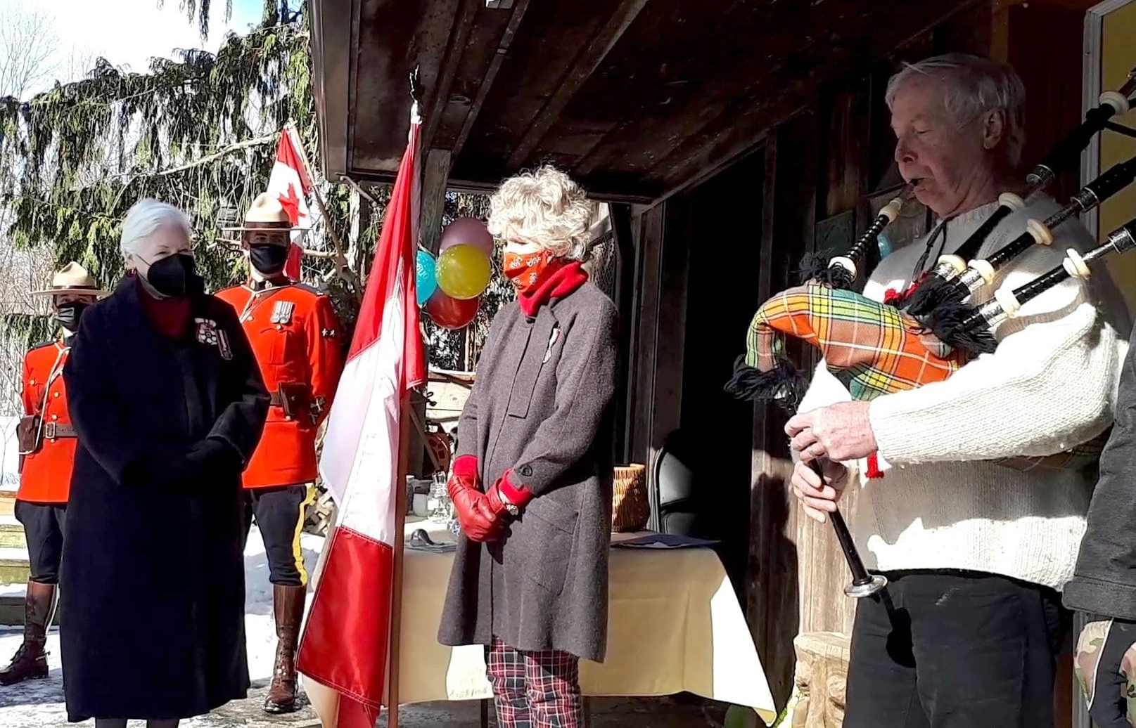 During the ceremony Yule’s husband, Mac, played the bagpipes and her two neighbours, both members of the RCMP, donned their full uniforms to commemorate the event.