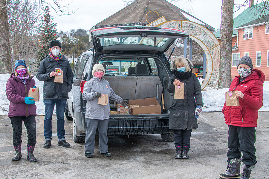 Almost planting time – The Erin Seed Library hosted a drive-thru Seedy Saturday event on March 6 at McMillan Park in Erin. From left are: Jen Edwards, Matthew Forbes, Connie Bienia, Shari Penty and Bonnie Malenfant. Edwards hosted the event with help from local vendors and volunteers from the Erin and Hillsburgh garden clubs.