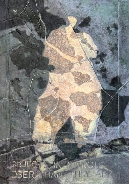 There is a mysterious figure in the fragmented glass.
